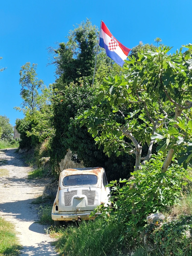 Alter verlassener Zastava (jugoslawischer Fiat-Lizenznachbau) in einem kroatischen Dorf.