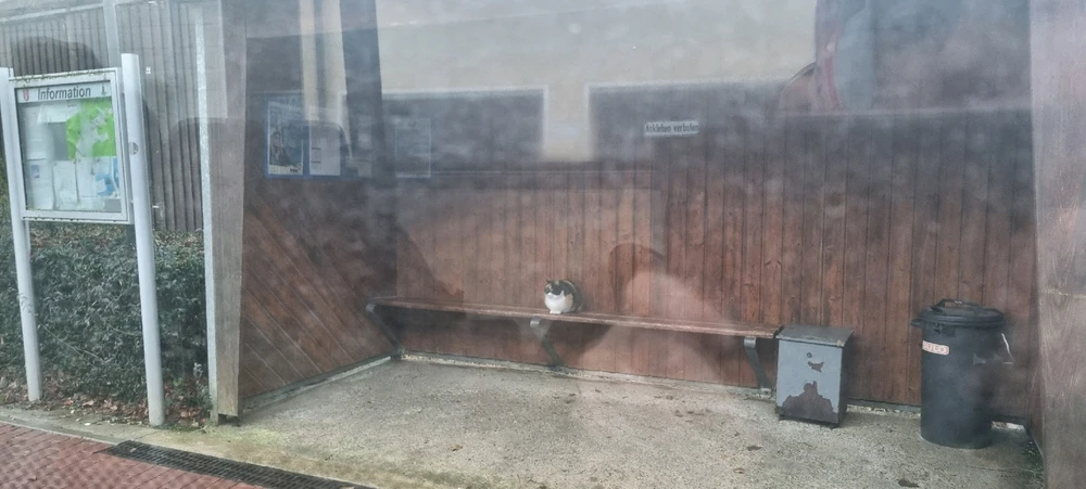 Hier gibt es nichts zu sehen. Nur das normale Bild einer Gaddse die wie jeder normale Mensch auf den Bus wartet 🤓