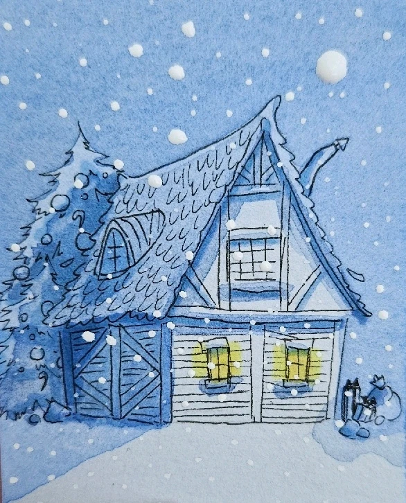 Dieses Jahr sinds mini-kleine verschneite Aquarellhäuschen. Also die Bilder sind so 4x4cm ca.