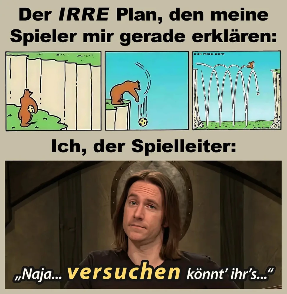 #dungeonsanddragons Vor kurzem hatte hier jemand die tolle Idee von seiner ersten Rollenspiel Runde zu berichten. Sie war Chaotisch und wild, wie es sein soll. (Und sie war besser als meine erste Runde, soviel dazu). Egal, jedenfalls kam mit der Gedanke hier mal ein par dinge zu posten die ich gelernt habe. Hier ist Teil 1: Die Spieler halten sich nicht an den Plot den ich vorbereitet habe! Sauerei! Aber so sind Spieler nun mal. Diese Lektion habe ich gelernt nachdem wir ein paar Jahre Shadowrun gespielt haben (erste Edition). Meine Erfahrung war: Ich bereite einen Run vor und habe einen Plan wie die Charaktere es trotz der tollen Sicherheitsmaßnahmen schaffen können. ---> Haben die aber nie gemacht. Immer, also wirklich IMMER!!! was anderes. Ab da habe ich keinen Plot mehr geplant. Also keine Geschichte die sie nachspielen können, wenn sie alles richtig(TM) machen. Ich habe ab jetzt Situationen vorbereitet. Es gibt diese Forschungsanlage, Doppelzaun, Wachen mit Hunden, Hubschrauber mit Einsatz Team in 10 Minuten nach Alarm da. Der Hacker der das Netzwerk schützt hat ein Drogen Problem. Mitarbeiter verbergen eine Affäre am Arbeitsplatz. Unter der Anlage verlaufen Stillgelegte U-Bahnschächte in denen Ghule hausen. -> GO Manchmal haben die Spieler mich gefragt wie sie das schaffen sollen. Da habe ich dann mit den Schultern gezuckt "Euer Problem, nicht meins" Nächstes Thema: Ein guter Spielleiter sagt Ja!
