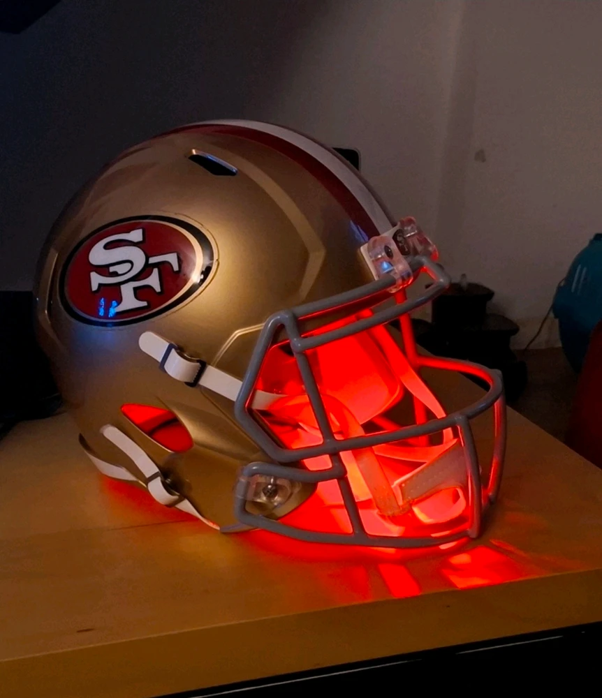 jetzt ist der Helm sogar beleuchtet, dass muss heute nen Sieg werden ❤️🔥 Go Niners