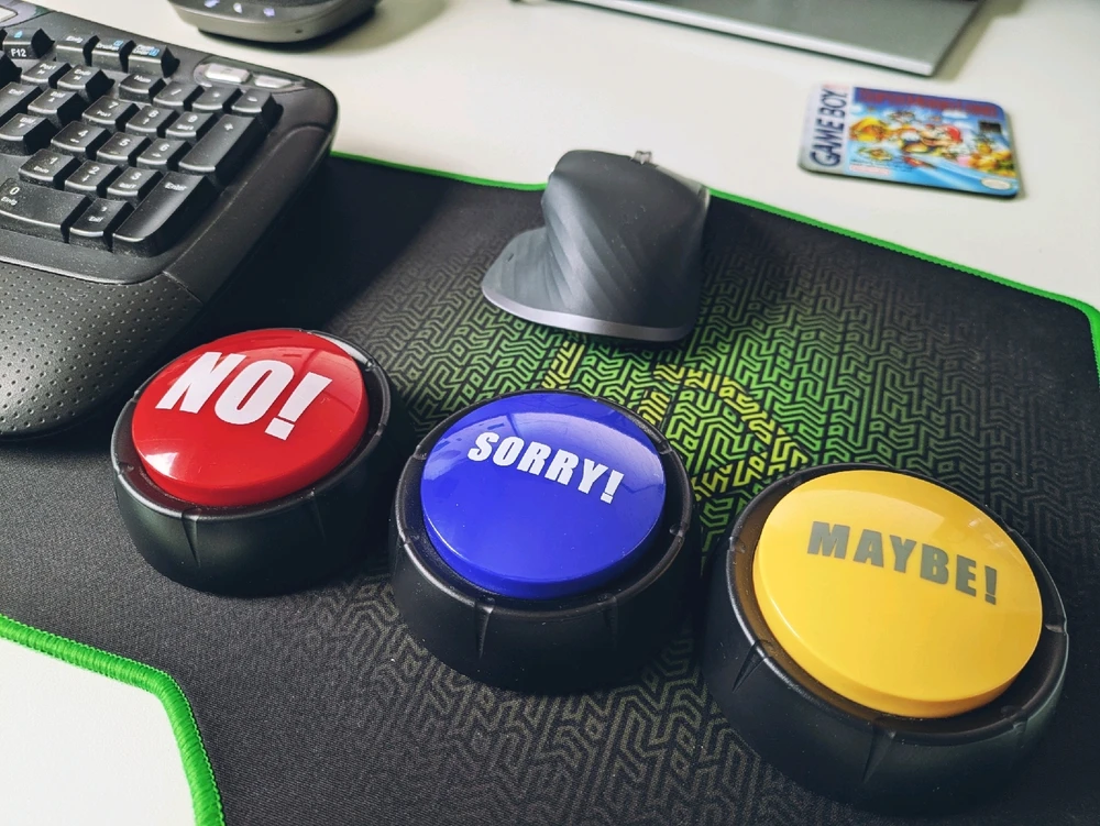 Drei Soundbuttons für das Büro (funktioniert aber evtl. u.U. ggf. auch im #homeoffice) 🙂 Ich habe übrigens noch einen mit "Yes", aber den erachte ich dann doch eher als unpassend für eine ausgeglichene Work-Life-Balance 😉 ⁉️ Dieser Soundtipp wurde unter Ausschluss jeglicher Gewährleistung... mehr lesen