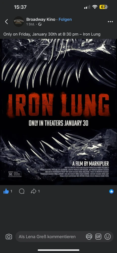 Ich werde am Freitag den Film von Mark schauen gehen 🥰 Bin echt gespannt.^^Ist nur ein kleines Kino in meiner alten Heimat und hätte nicht gedacht, dass sie die Lizenz bekommen ^^ Hatte dort vor nem Monat mal nachgefragt, aber es kam nie eine Antwort, bis ich heute über den Ticket Verkauf... mehr lesen