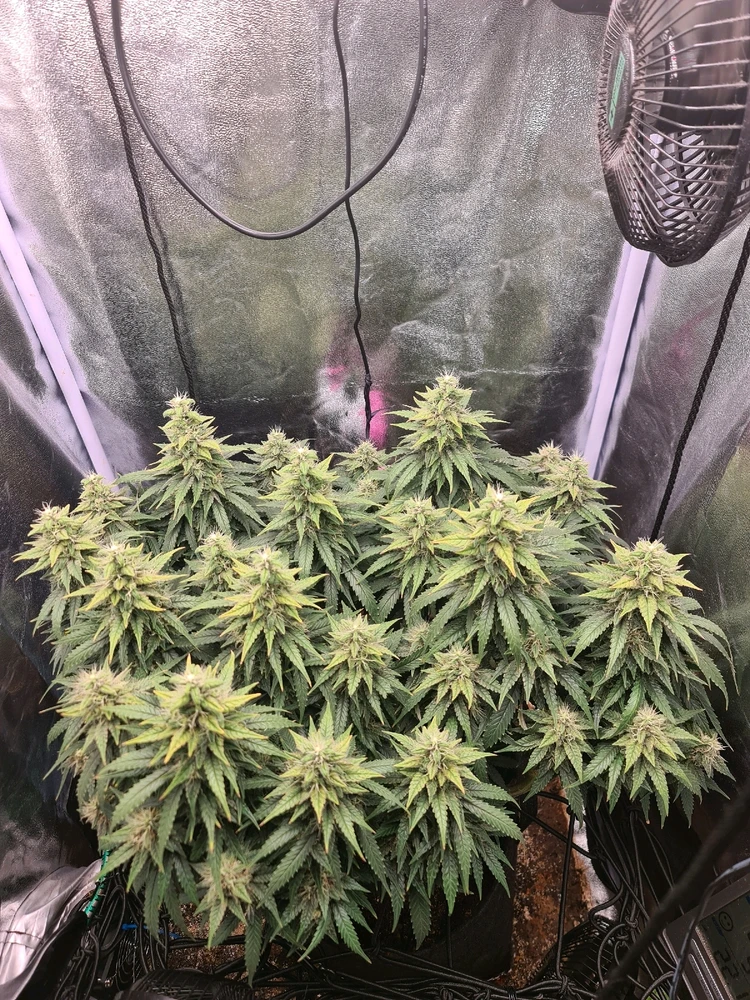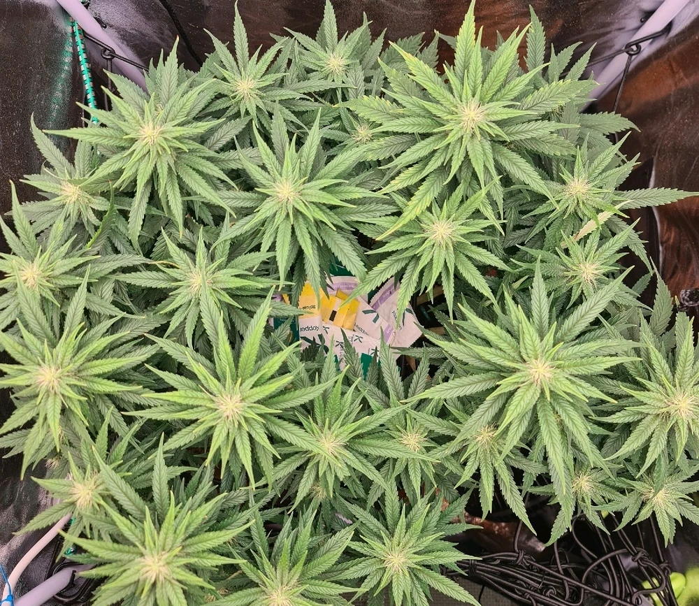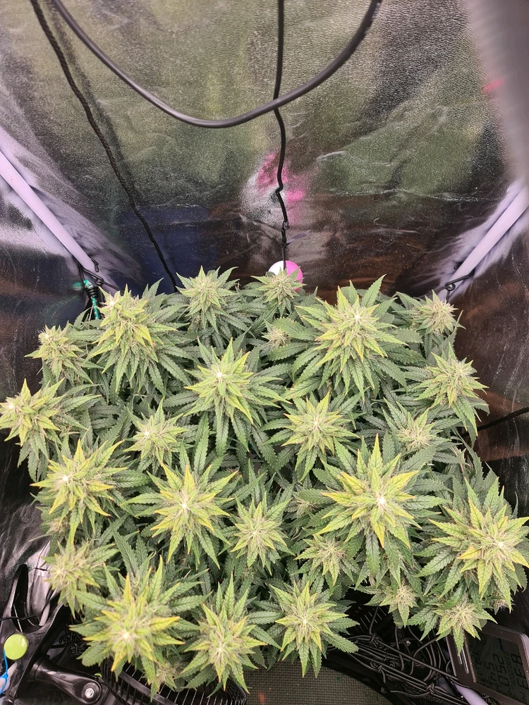 Von Sensi Seeds. 14 Wochen alt. Blütewoche 4 Höhe ca. 44cm Abstand zu Lampe ca. 40cm