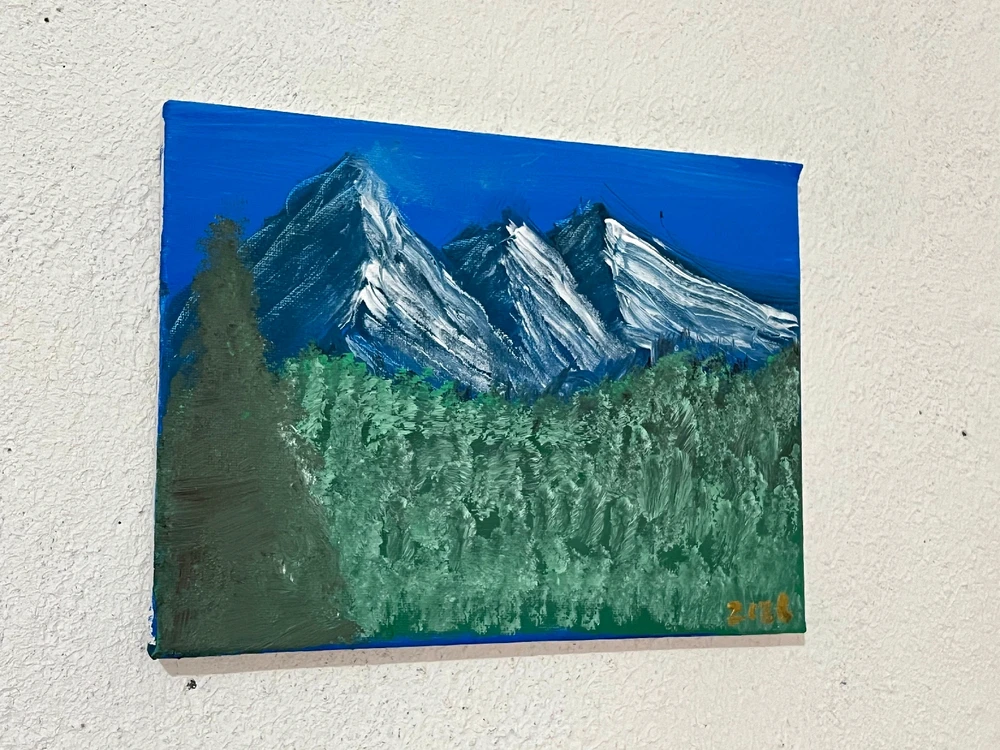 Hice esto con técnicas de bob ross, para ser mi primera vez pintando no lo veo tan mal