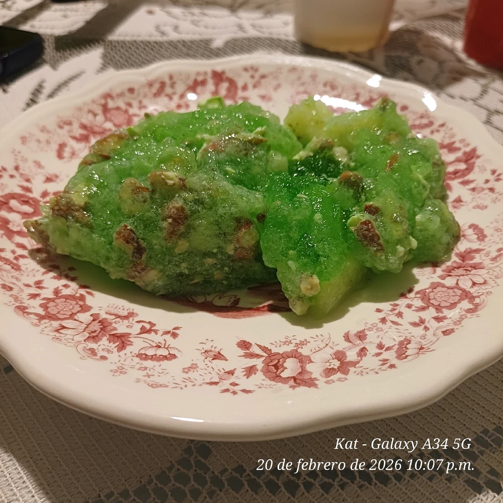 Me acabo de enterar que en algún lugar del norte le llaman ensalada, mi familia la conocemos como gelatina verde jajaja Lleva: gelatina de limón, nuez, piña (en almibar), queso cottage, también se le puede agregar apio. Proceso: Hacer gelatina de limón (pero al poner el agua fría lo sustituyes... (editado) leer más