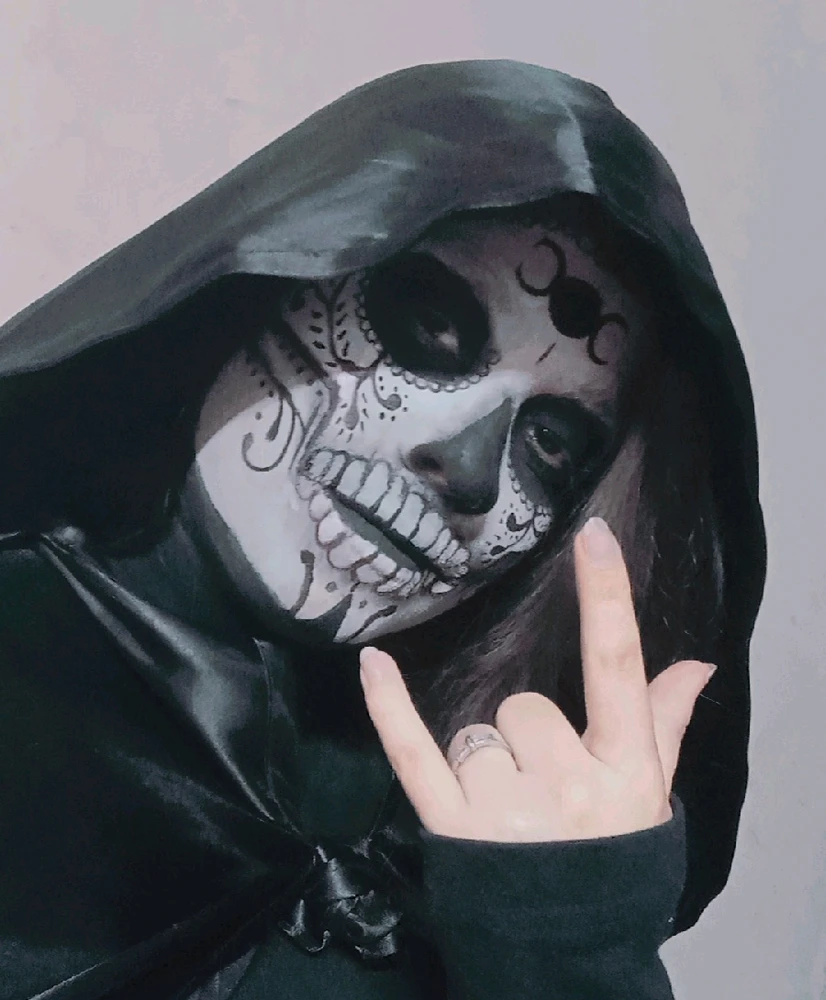I did my makeup yesterday for a Halloween party. I'm not good at makeup, but I think it turned out decent. What do you think? I tried to base it a little on Death from the Deadpool video game, but only in some parts 🖤