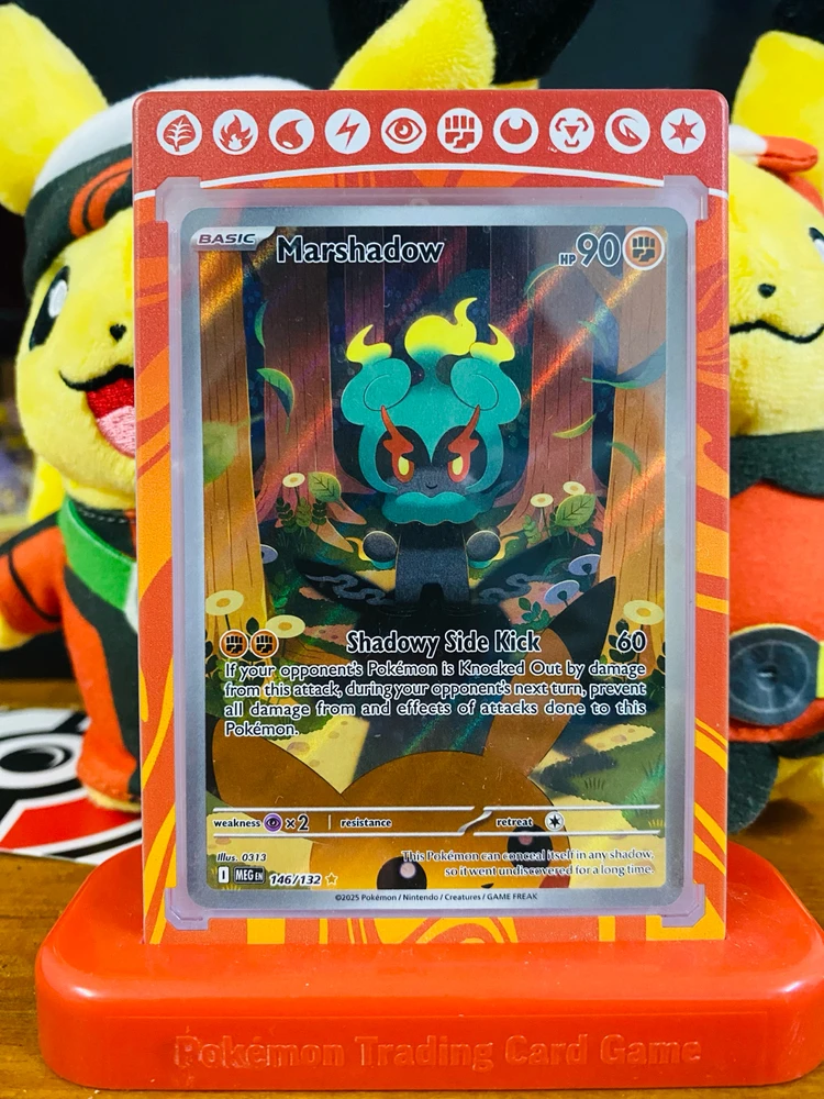 Marshadow de la expansión Mega evolutions Esta es nueva, me salio hace unos días en un sobre que dije que no abriría por que quiera hacer mi colección de sobres sellados jajaja la lección del dia es: Nunca dejes el sobre sellado.