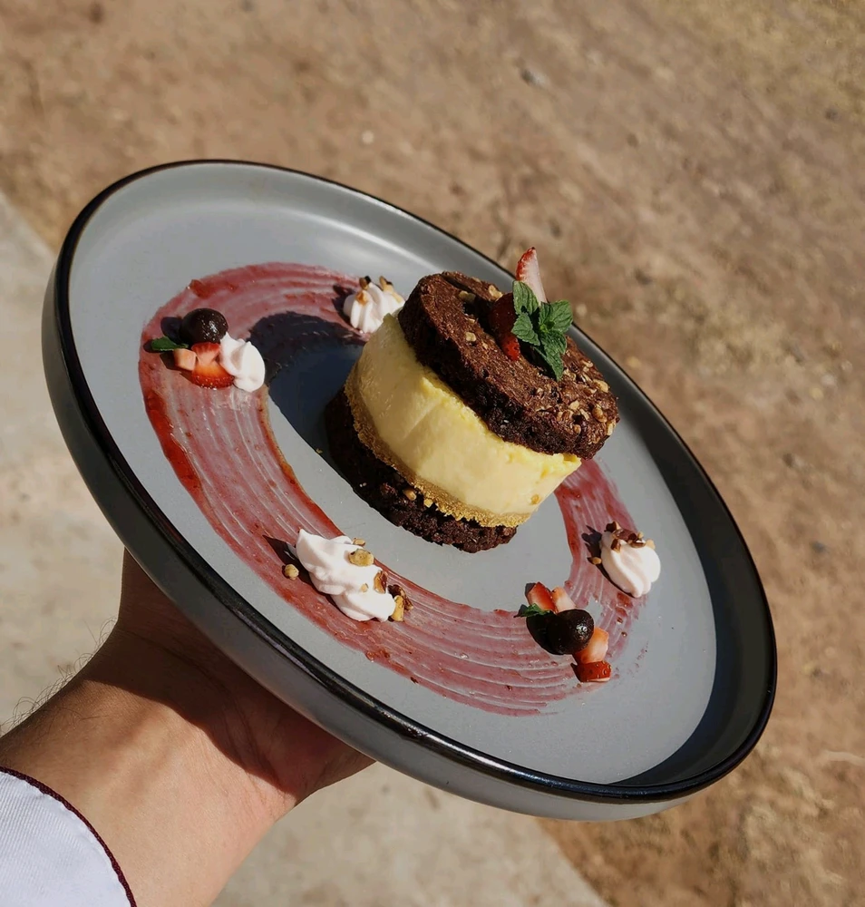 Panna cota de café y brawni con pay