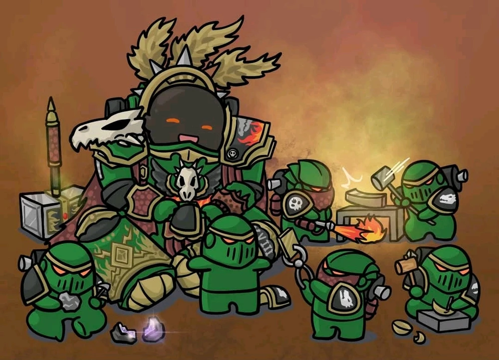 Agradeci con conocer al perrito de taza por conocer este maravilloso universo Mi primarca favorito es Vulkan y por ende me encantan las salamndras ya que en la mierda que es el universo esa luz de esperanza me da como: WAOS.