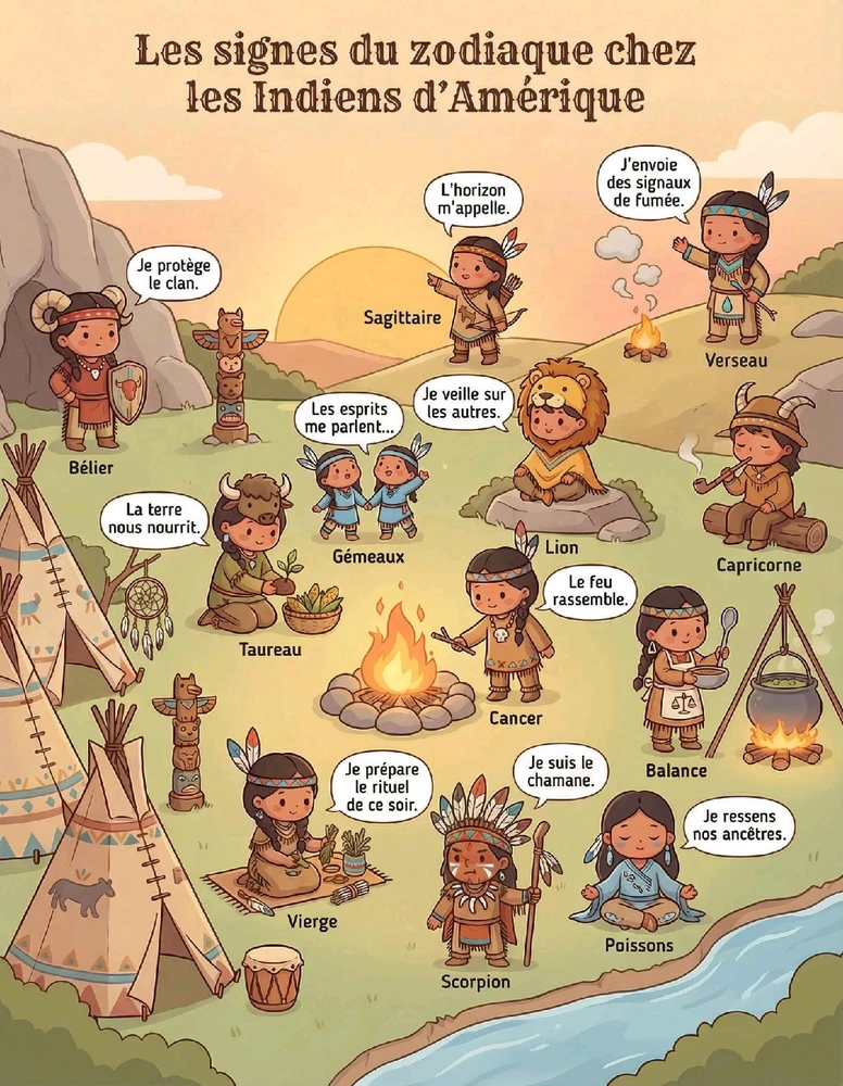En mode rituel, connexion à la nature et esprits ancestraux… c’est du pur toi autour du feu de camp ! 🏹✨ (modifié)