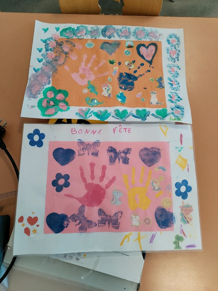 Parce que tout simplement un bonheur d'offrir un cadeau fais à la main ce ne sera pas une fête des mères mais une fête pour les 2 parents où simplement une fête tout court . Set de table réaliser par les 3-5 ans