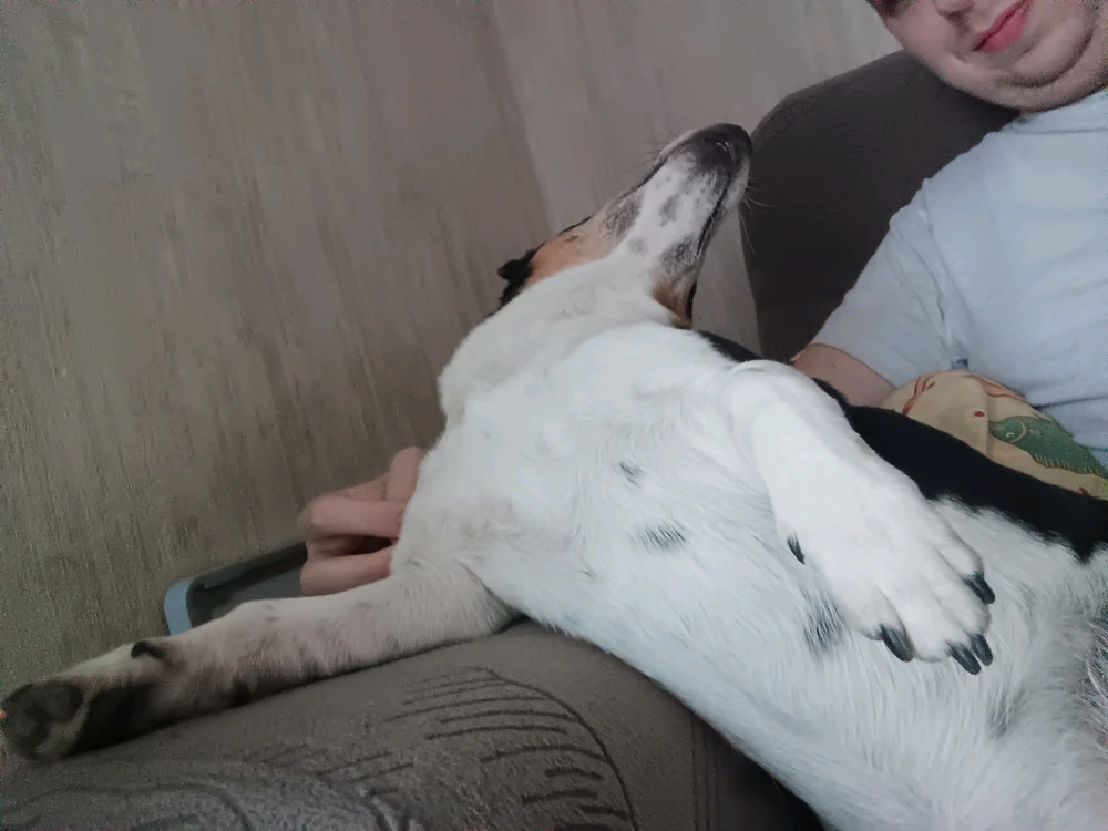 Henko le doggo fait un gros dodo après la promenade. Il vous souhaite un joyeux samedi sous le soleil.