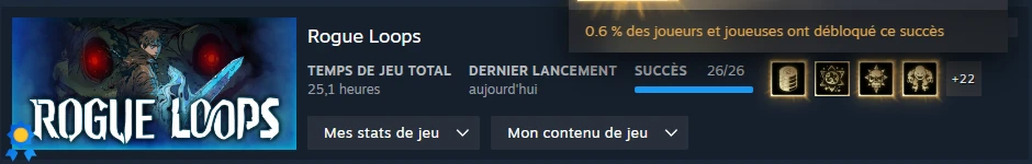Et un nouveau 100% ! Quelqu'un d'entre vous y à jouer à tout hasard? C'est un rogue lite qui parait assez compliqué à première vu car il demande un certain grind mais qui au final se révèle être assez sympa . Je l'ai bien aimé pour ma part mais j'estime qu'il manque un peu de durée de vie... en savoir plus