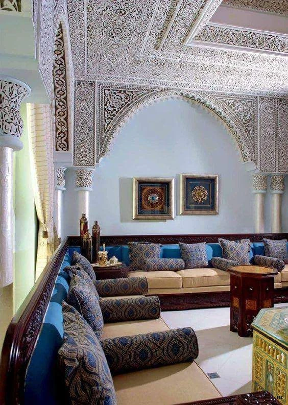 Moroccan Guest room (Salon) It is a one of a kind room, and it shows how the moroccan families, no matter how poor they are, or their home is small, they always keep a huge room for guests. filled with moroccan sofas called Sdari. A little sign of hospitality ! ❤️