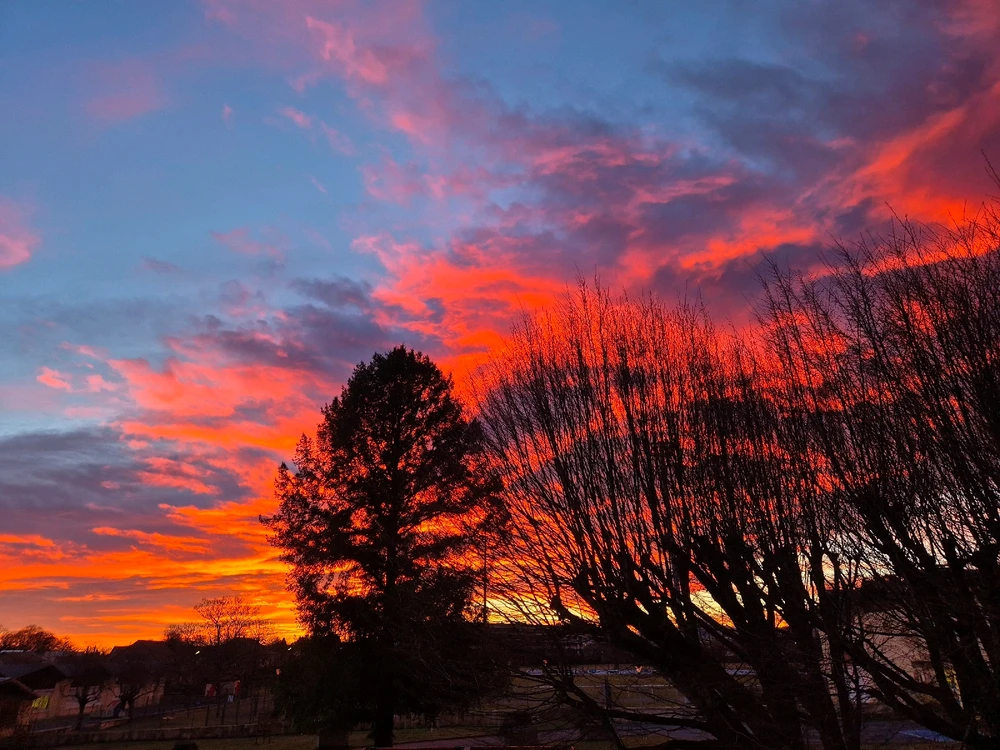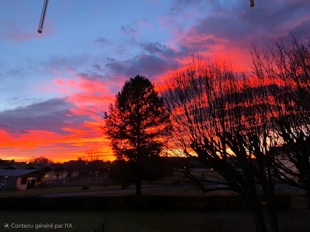 Lorsque le ciel nous offre un magnifique spectacle ✨️ Il y a des matins où ça vaut le coup de se lever, ne serait-ce que pour voir ça. (Sur la 2ème photo, j’ai supprimé un bâtiment en avant plan, d'où la note sur l’ia, mais sinon je n'ai rien touché, les couleurs étaient encore plus belles en... en savoir plus