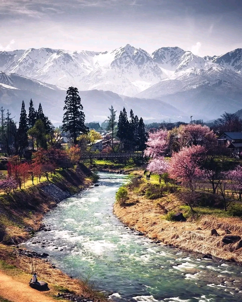 Magnifique vue sur les Alpes japonaises depuis le Parc Oide. Situé au sein du village d'Hakuba (préfecture de Nagano), ce parc offre une vue incrovable sur es Alpes japonaises, et plus précisément les Alpes du Nord La vue donne également sur un pont suspendu au-dessus de la rivière Himekawa, et de... en savoir plus