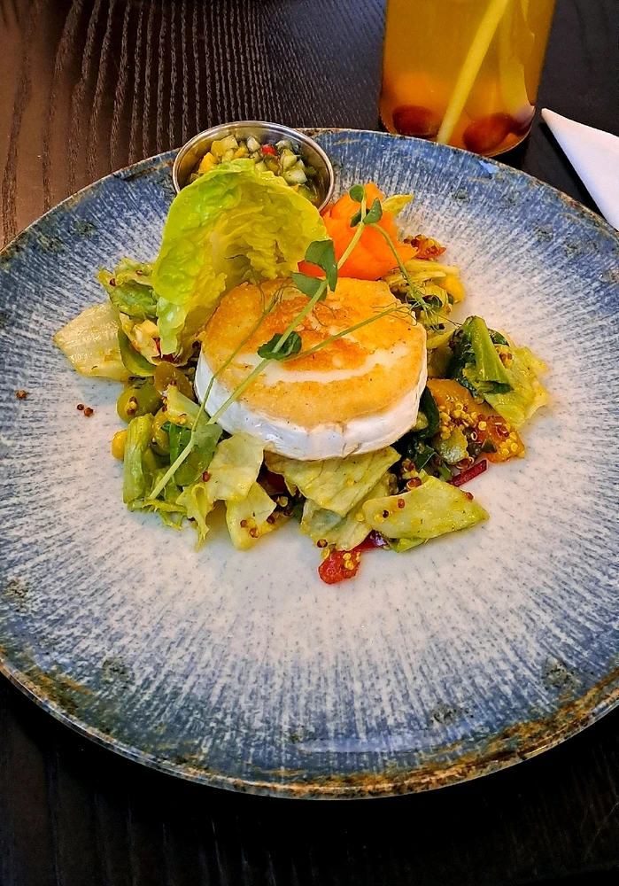 Griss kecskesajt mangó chutneyval, quinoa salátával