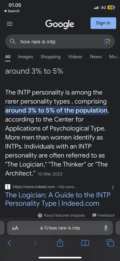 Soo according to Google, INTP is one of the rarest MBTI personalities (take a look at that pic) , anddd of all the personalities, INTP is the one I always see in here hahahaha, dudeee are we really that lonely in real life??😭😭