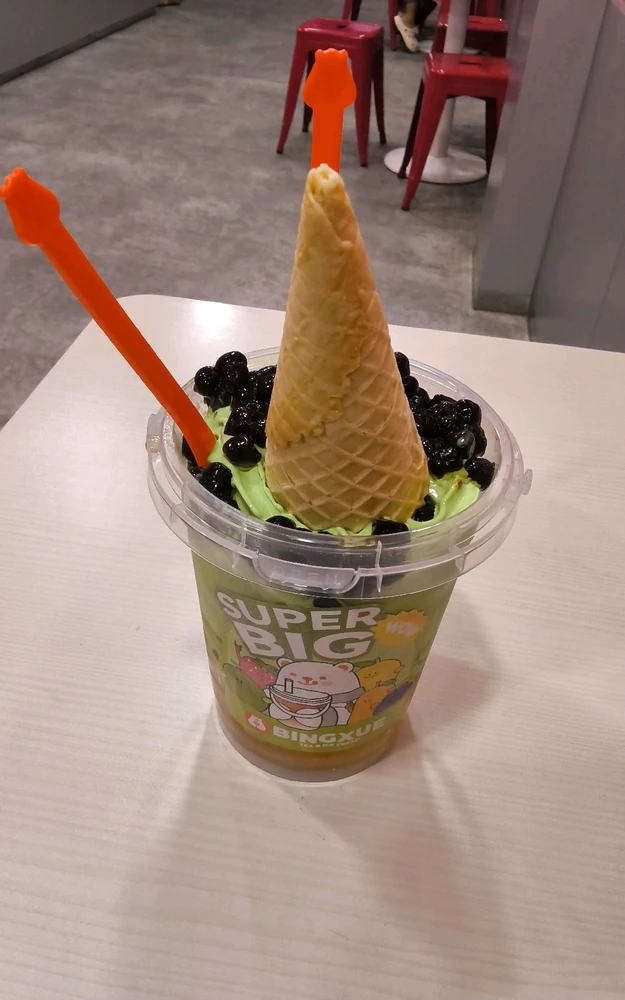 Finally! Me time ditemenin bucket es krim segede gaban dari Bingxue. Brown sugar boba-nya top! 🔥