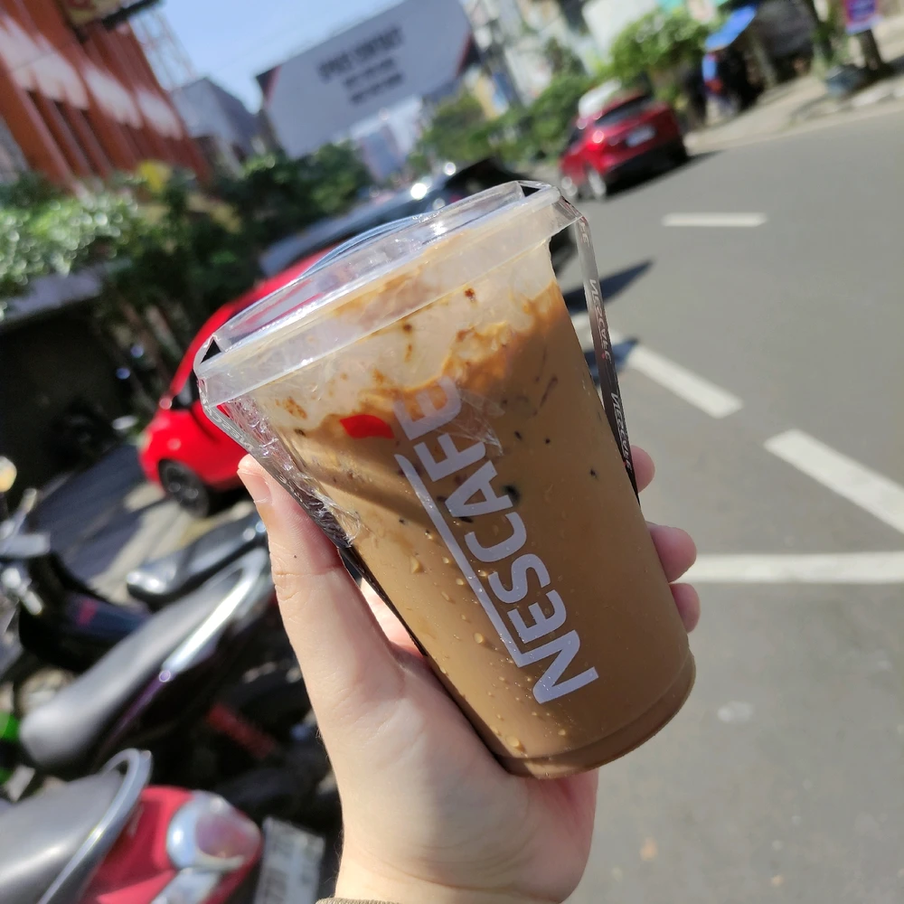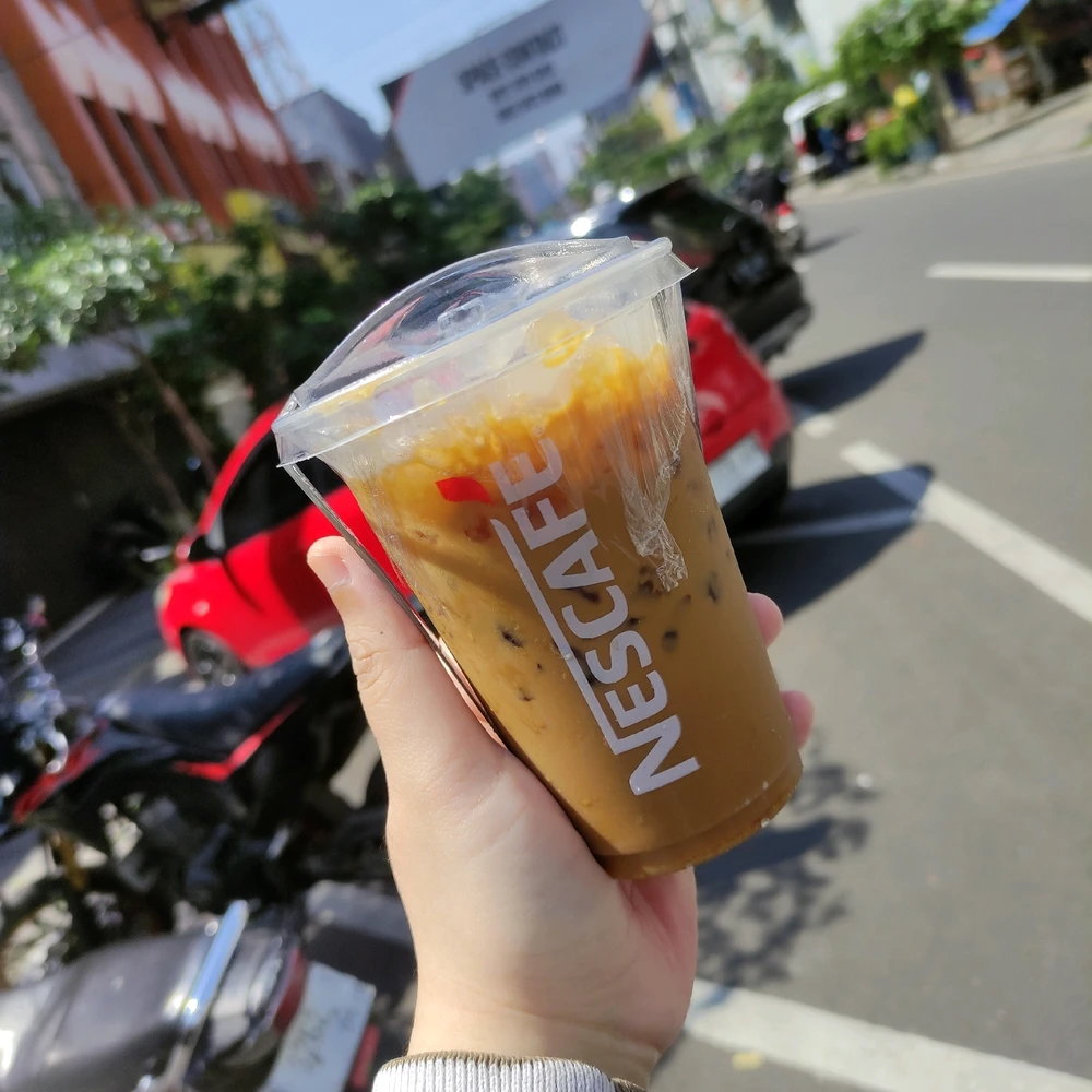 akhirnya kesampean juga jajan kopi di booth nescafe 😆😆 lattenya enak 👍🏻👍🏻 cuma sayangnya less sugarnya masih manis banget 😆😆 kalo neslonya (nescafe + milo) enak juga dan lebih berasa susu milonya dibandingin kopi nescafenya . untuk harga 10ribuan , ini udah mantap bgt sih 👍🏻👍🏻