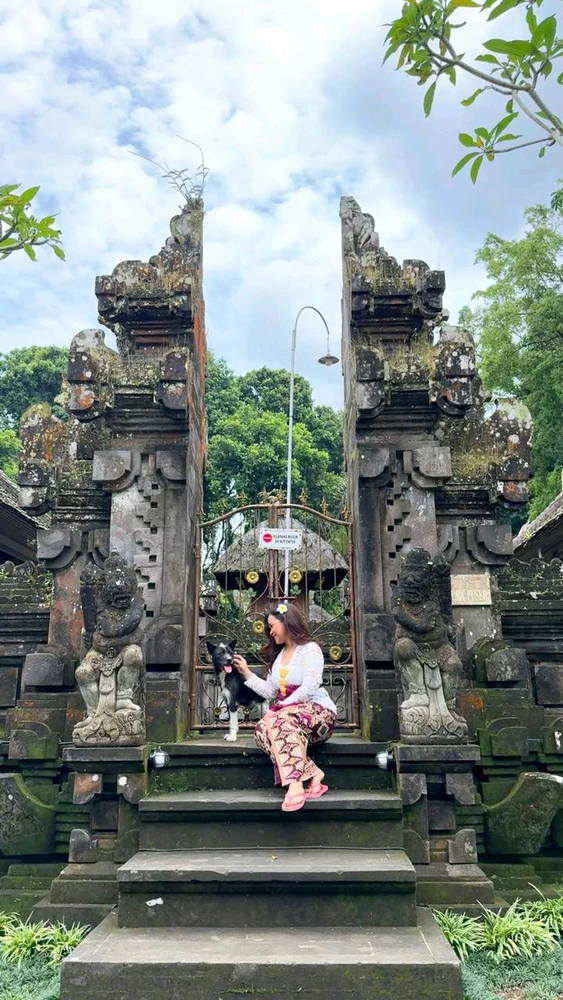 While i'm walking around at the Pura and take a picture, a stray dog come to me and wanna take a picture together hahaha.. so i let him and the guide capture that sweet moment 💕 And yes, i'm wearing Bali Traditional Clothes..