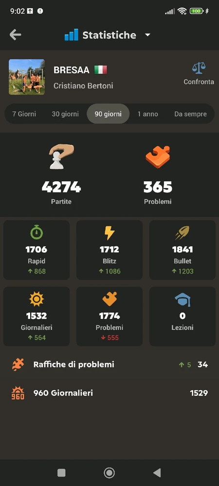 Per chi volesse fare una partita a scacchi ogni tanto vi lascio qui il mio secondo account su chess.com (ho perso il primo 🫤) Gioco molte rapid da 10 e 15 minuti ma non disdegno altri tipi di partita (modificato)