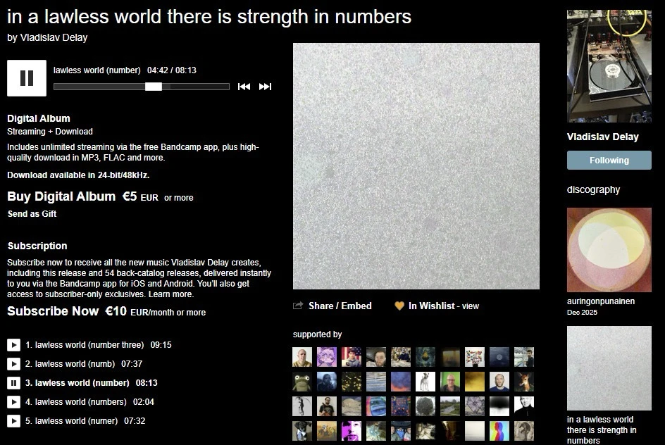 un album droppato da Vladislav Delay il 31/12/2025 e nemmeno ero accorto. Lo consiglio a chi ama il genere. (modificato)