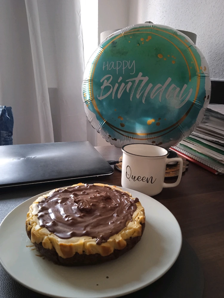 Por mi cumpleaños en febrero, me preparé una deliciosa New York Cheesecake con chocolate en cima.. 😋😋 For my birthday in February, I made for myself a delicious New York Cheesecake with melted chocolate on top! Amazing! (modificato)