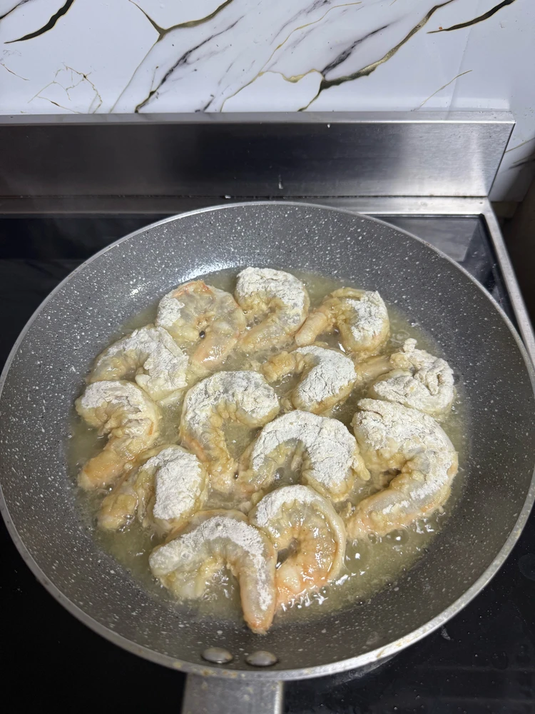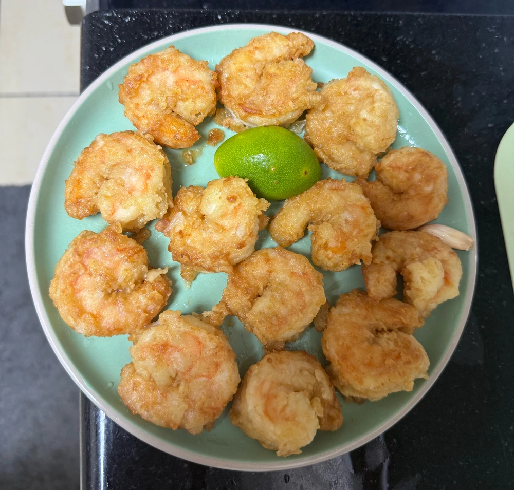Ho cucinato i gamberi, ho aggiunto limone e pepe nero, erano molto saporiti e alcuni erano croccanti. (modificato)
