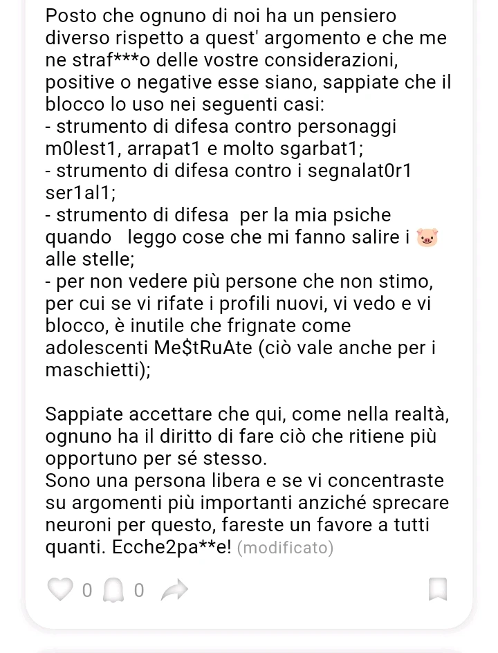 Breve storia triste anzi assurda: Commento il post del giorno e ricevo la notifica like: come tutti guardo chi è ed è un tizio abruzzese: leggo la bio, etero ma a me frega niente visto che qui ho un sacco di amici e amiche etero. Visto che in Abruzzo siamo tre gatti gli scrivo semplicemente “ciao,... (modificato) leggi di più