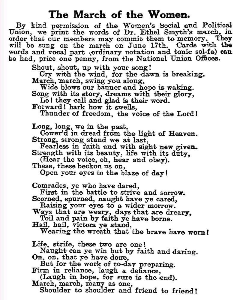 In occasione dell'otto marzo, condivido quest'opera INCREDIBILE scritta nel 1910 da Ethel Smyth,compositrice molto attiva nel panorama femminista dell'epoca. È una composizione veramente poco conosciuta,ma che merita tanta considerazione, soprattutto in giorni come questi,in cui gli auguri non sono... (modificato) leggi di più