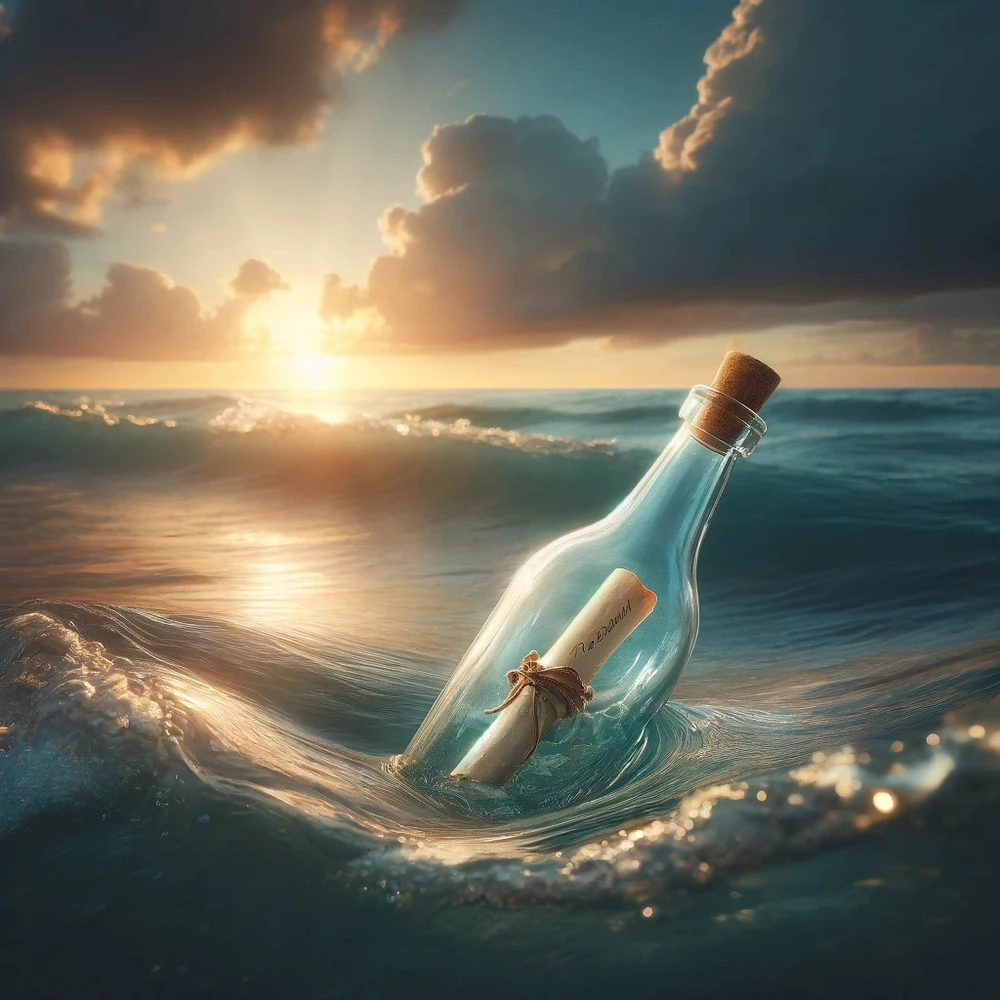 In un mondo in cui le strade si incrociano solo per un attimo e le storie vengono soffiate via dal vento, mi affido a questo messaggio, sigillato in una bottiglia e lanciato nell'immensità dell'oceano: Trovami! E. (modificato)