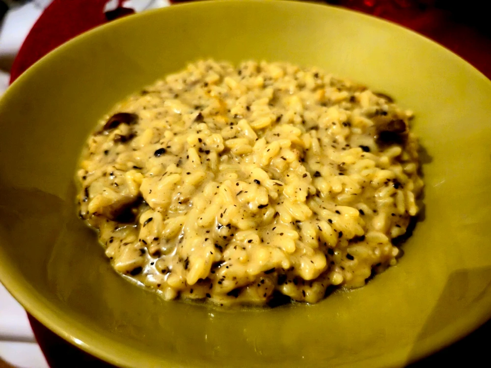 Non sono uno chef, ma qualche volta per errore esce qualcosa di buono. Risotto, funghi, parmigiano, un po' di crema di tartufo e una spolverata di pepe