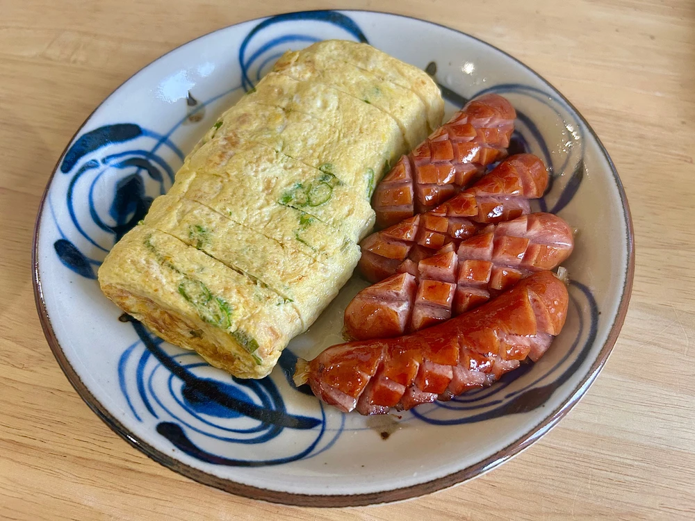 ネギ入り卵焼きと黒豚ソーセージ👌 (編集済み)