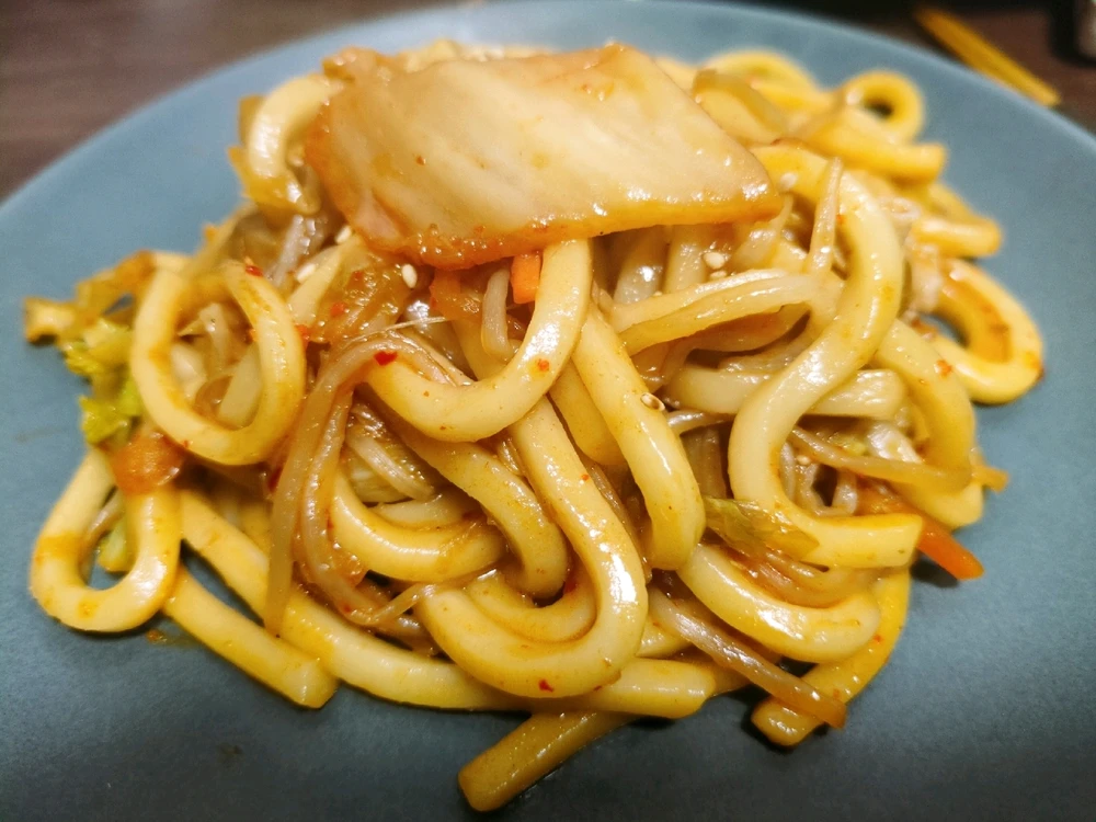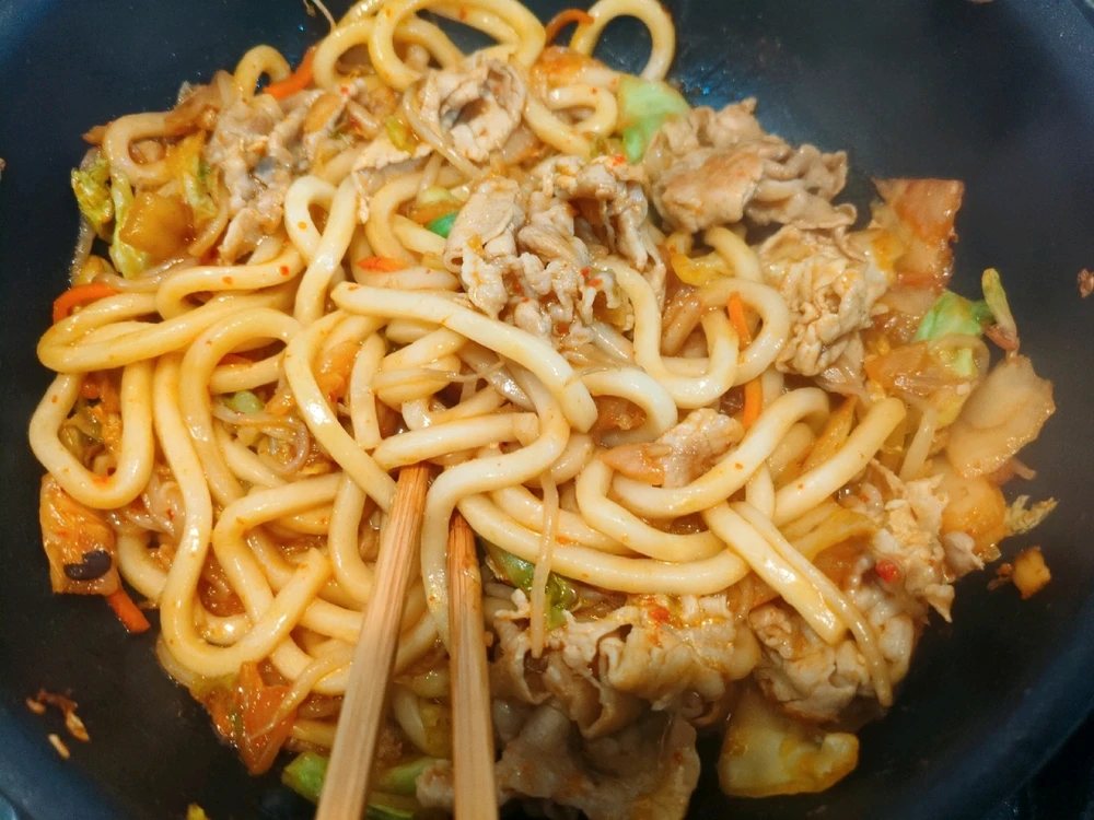 豚キムチ焼きうどん Today's dish: Pork kimchi fried udon