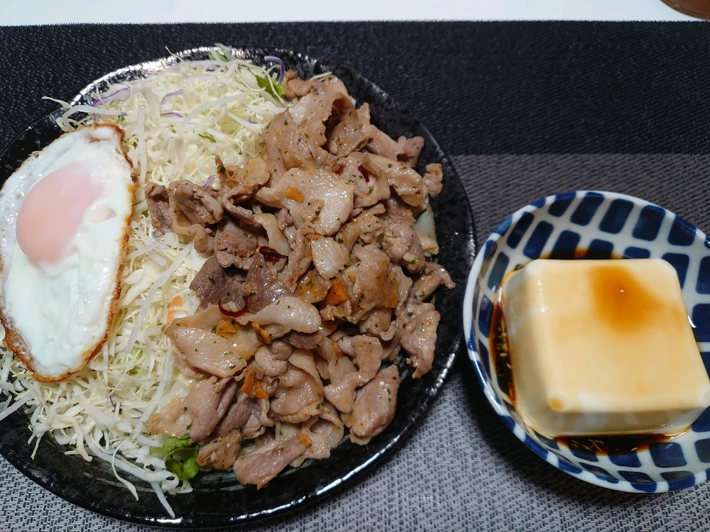 Seasoned with pork using peperoncino sauce for pasta👍 It is a stamina dish with garlic to keep up with the heat.😋