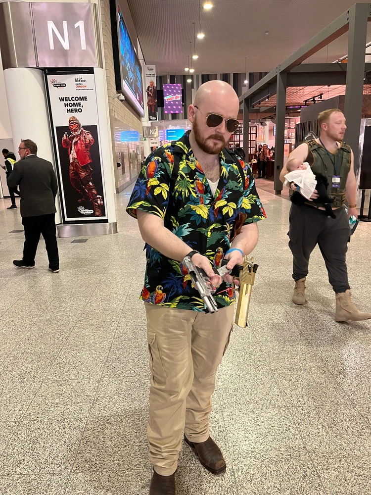 Enclave Remnant (Fallout) Max Payne (Max Payne 3) See, I like them, because I have no hair and I look deranged, anyway. Flawless execution. #falloutnv #fallout #cosplay #maxpayne #amongus