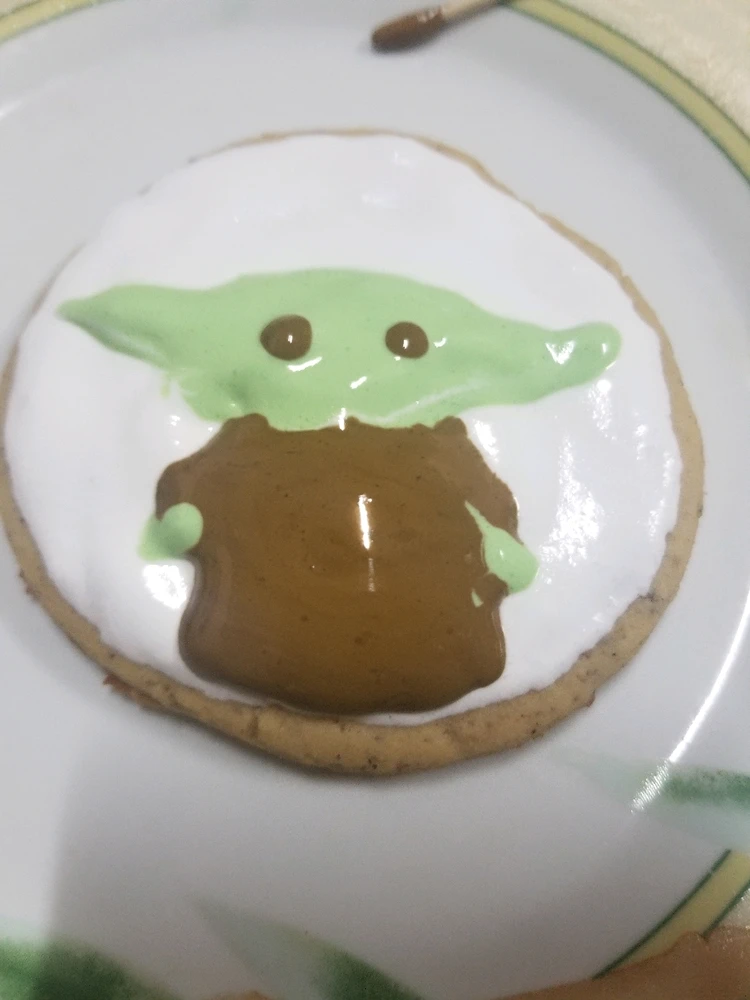 Enjoy the holidays with this cookie of baby yoda (Its terrible but I did my best) :)
