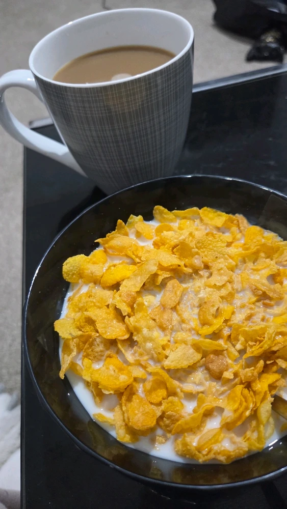 Breakfast was cornflakes. I was/am tired 😹