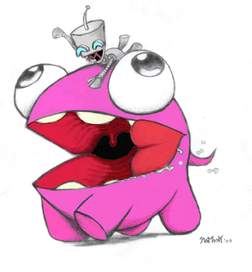 I made a paper mache pig thing several years before this, that I called the Puig. I wanted to draw Gir riding it like he does with his giant robot pig, except this one is... different. Its a puig. I was going to have heaps of other characters and an extensive background but that was too daunting... read more