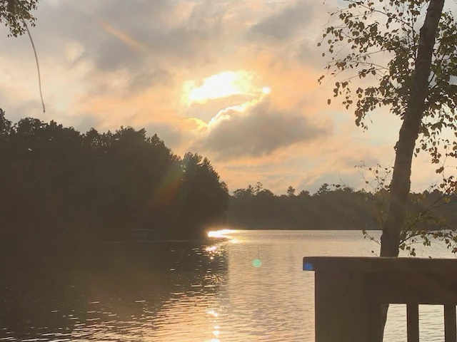 The rain ended. The sunset peeked through the clouds over Fishtrap lake near Boulder Jct, WI while enjoying a a nightcap at water’s edge.
