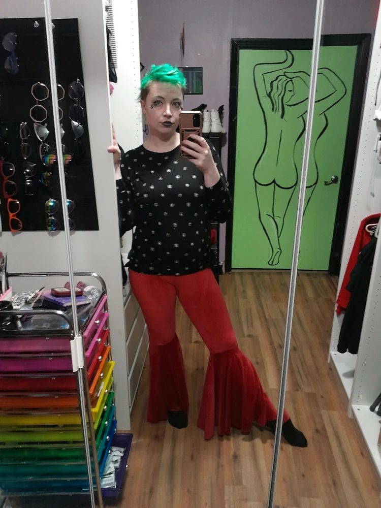 I went thrifting yesterday. I shopped the sales and saved like $90 😁 A lot of what I got was just pants because I've lost 45 lbs over the last 6 months. But here's some of the fun things I'm most excited about I got these super duper soft dusty red bell bottoms. A delightful pair of green plaid... read more