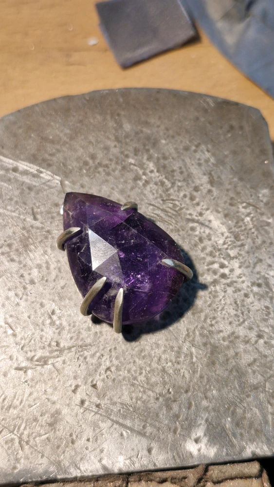 Silversmithing is one of my hobbies. Was making a claw setting for this amethyst tonight!