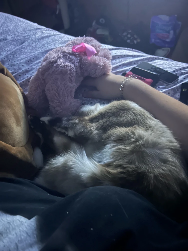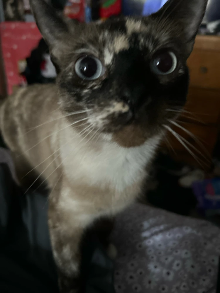 this is my cat star. i love her very much. she loves chicken wings and sniffing everything.