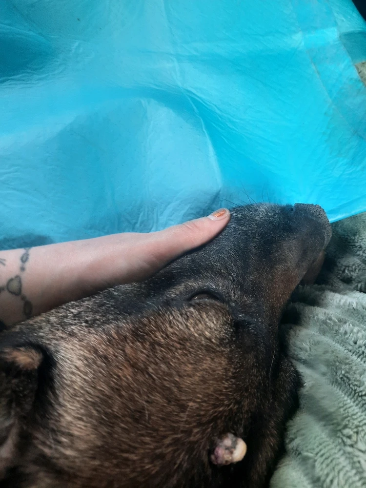 Dag meisje , laatste rit naar huis. Geen pijn meer , geen medicatie meer. Run free in heaven 💫⭐️🌈 Miss you and I love you so much ❤️
