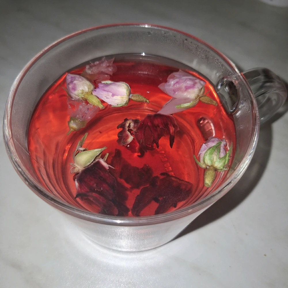 Suszone pączki róż i płatki hibiskusa🌸🩷💜 Edit - napar nie herbata😆 (edytowany)