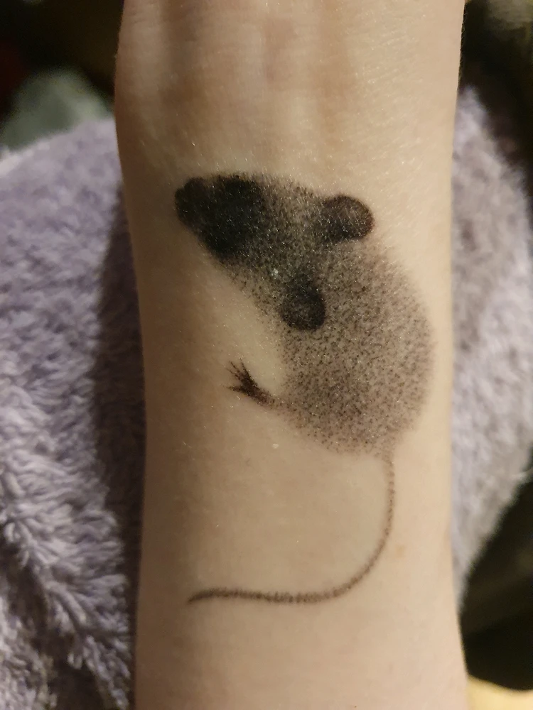 Almost year ago after my first tattoo. Another mouse as tribute 🥰🐁💜😏