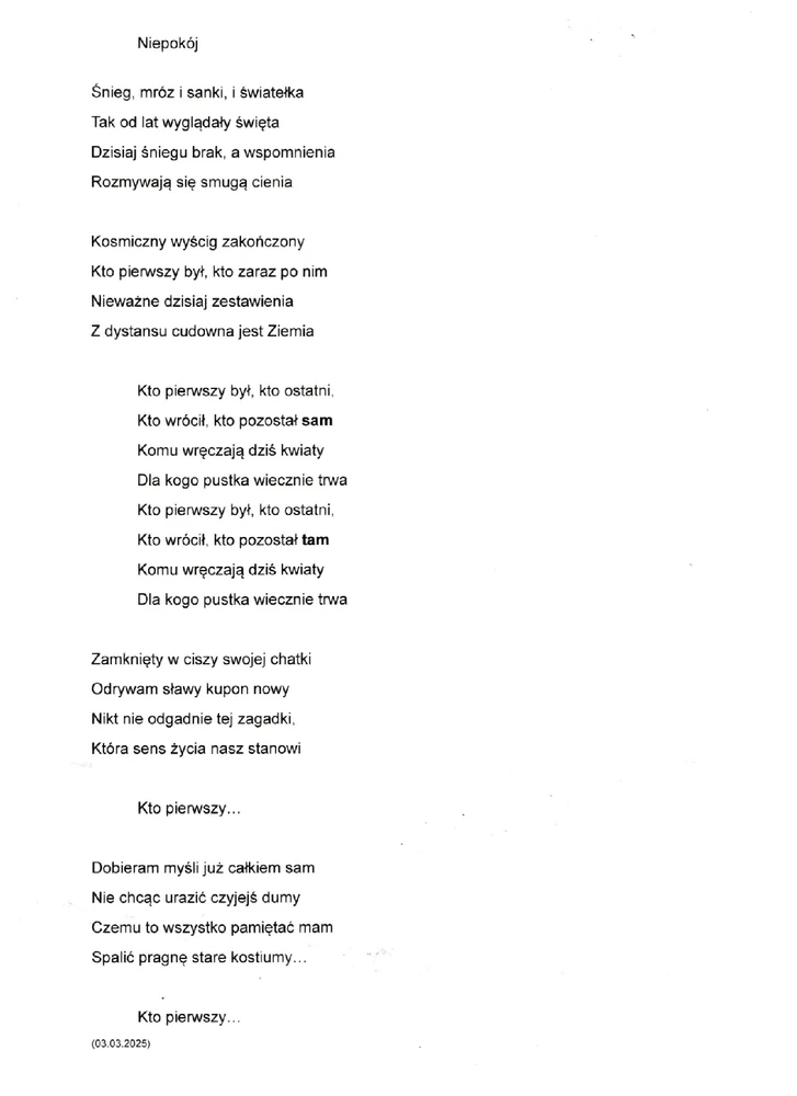 w hołdzie wszystkim pionierom podboju kosmosu - Niepokój