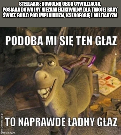 Ja zwykle pod pacyfizm, ksenofilię i egalitaryzm, demokracją (wiem, że słabo, ale nie bardzo potrafię się przekonać do xeno-genocide (wiem też, że to tylko gra) 😑), ale memy to inna sprawa: